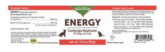 ENERGY Cordyceps mushroom powder extract for Dogs & Cats