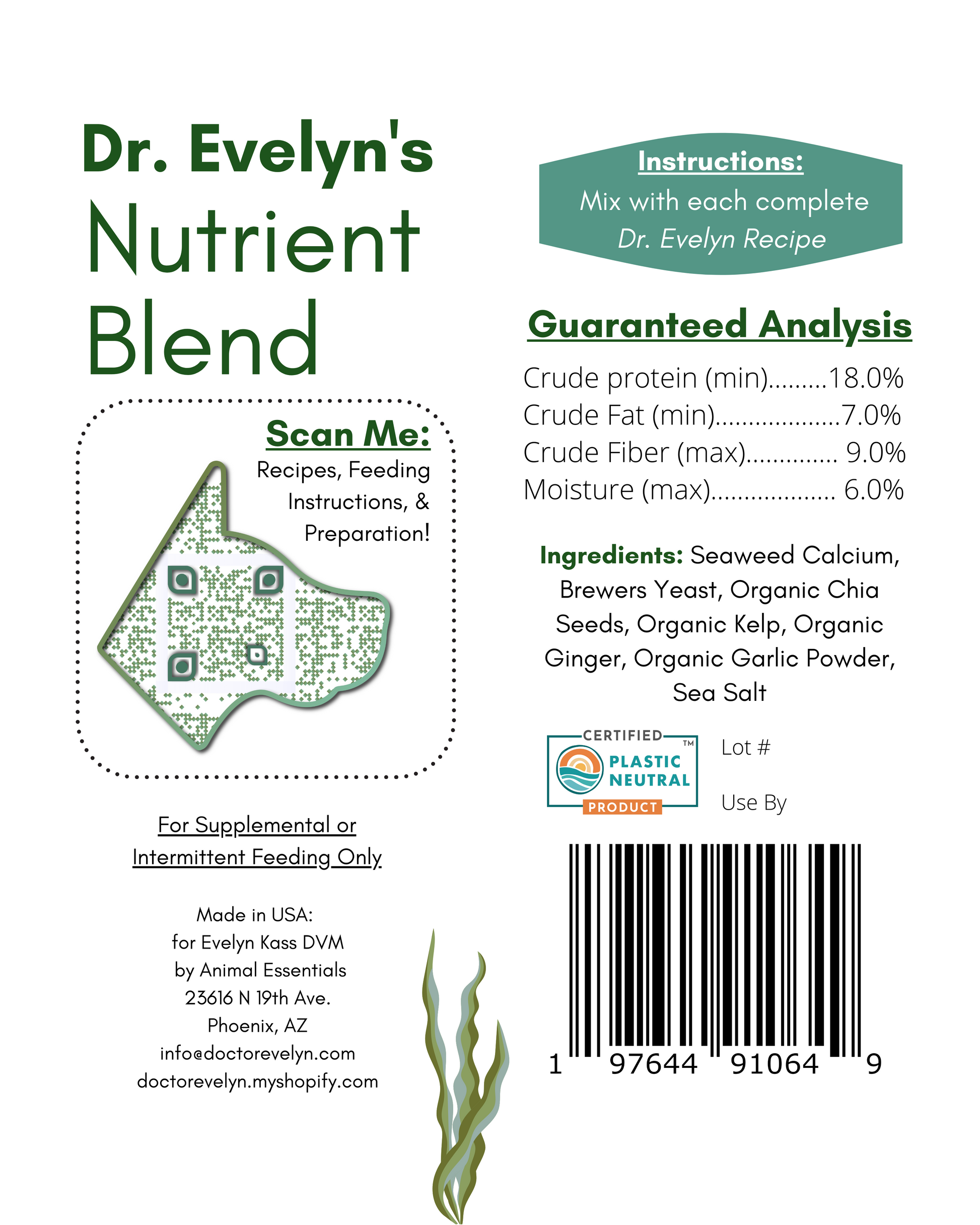 *Only complete and balanced with Dr. Evelyn's Nutrient Blend